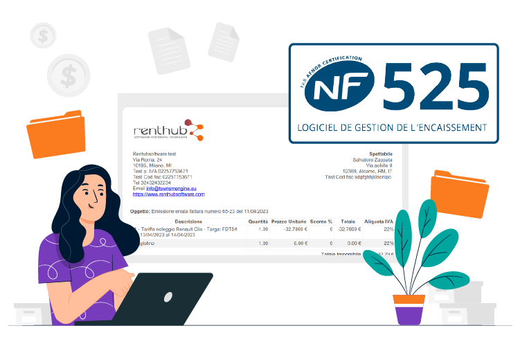 Facturez, comme dans le document fiscal que le système génère dans le format légal requis. Combiné à l'envoi automatique d'un e-mail à votre client à la fin de la location.
